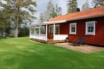Holzhaus. Wohnzimmer. Schlafzimmer, 1 Doppelbett.Schlafzimmer, 1 Doppelbett (1,2 m breit) + 1 Oberkoje. Offene Küche, Elektroherd mit Backofen, Kühlschrank, Geschirrspüler, Kaffeemaschine. Dusche, WC.